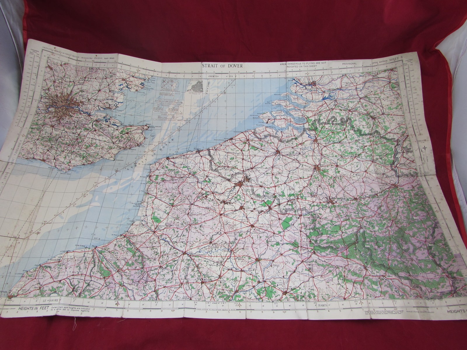 1942 Cloth-Backed Map of the Strait of Dover – WW2 Period